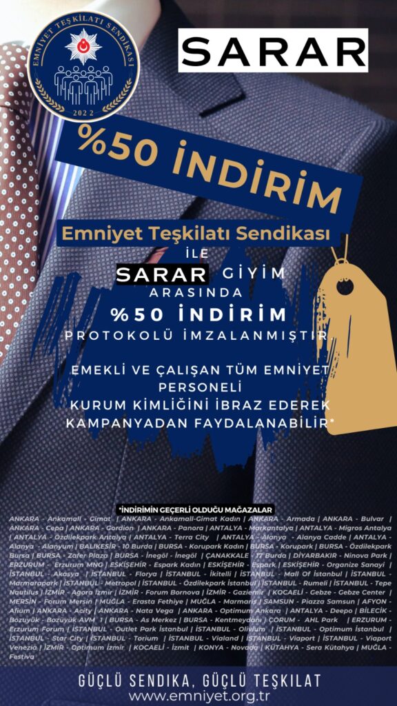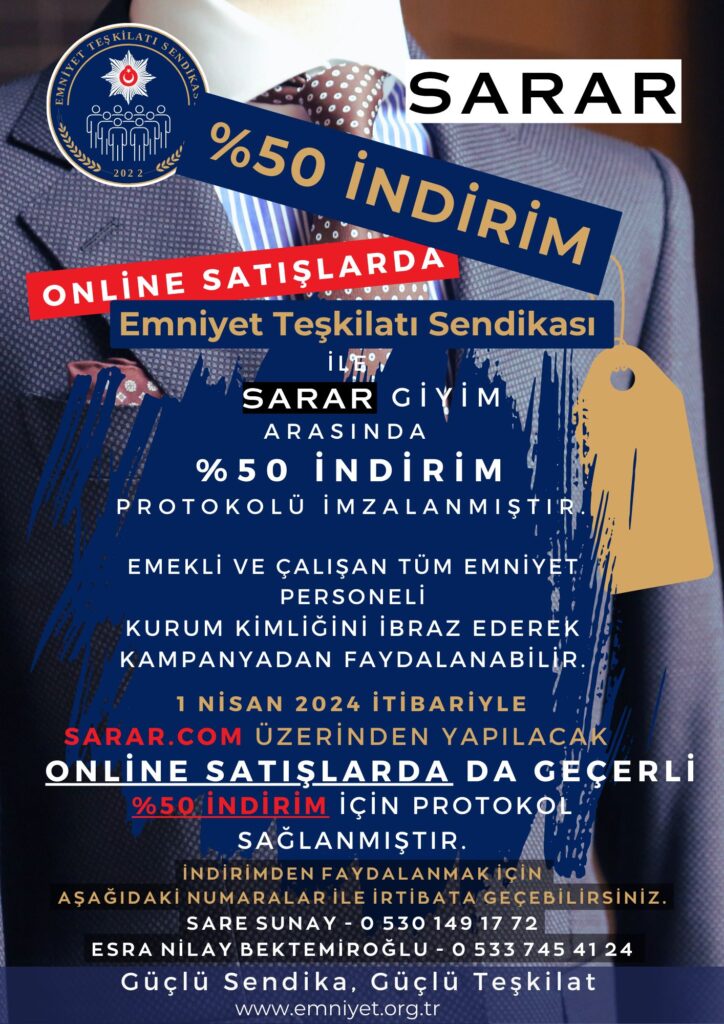 Sendikamız ile giyim sektörünün öncü markalarından Sarar Group arasındaki protokol, bu yıl da %50 indirim fırsatı ile devam etmektedir.