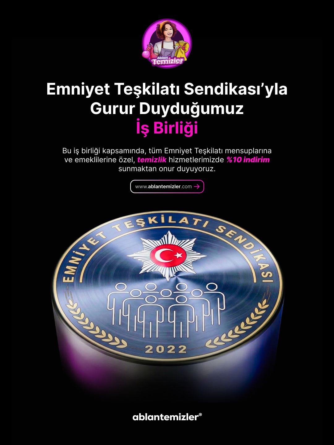 Emniyet Teşkilatı Sendikası ile Ablan Temizler arasında %10 indirim anlaşması imzalanmıştır.