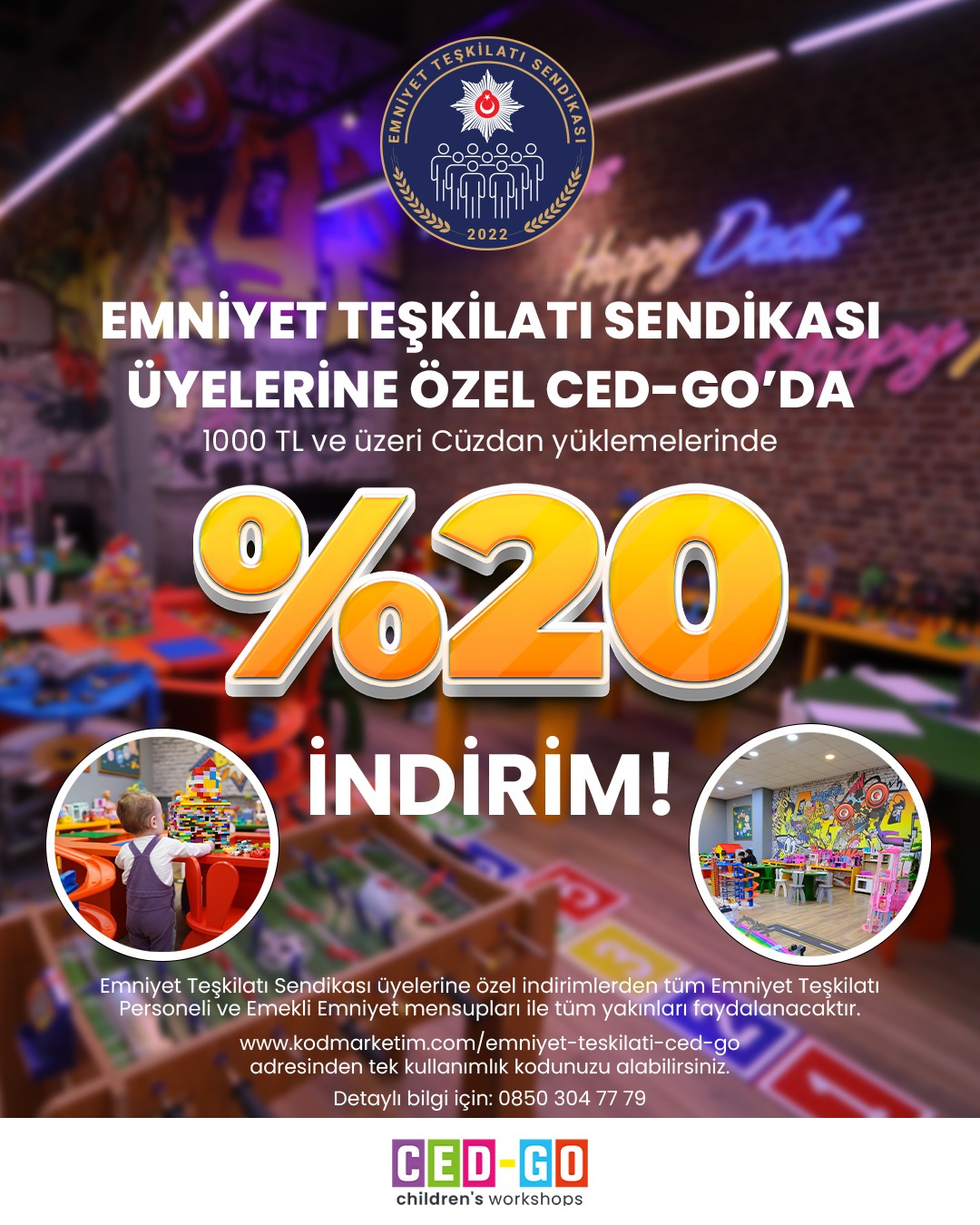 📌70’ten fazla şubesi bulunan CED-GO eglence merkezinden 1000 tl üstü ve yüklemelerinizde maksimum indirim oranı olan %20 indirimle faydalanabilirsiniz.