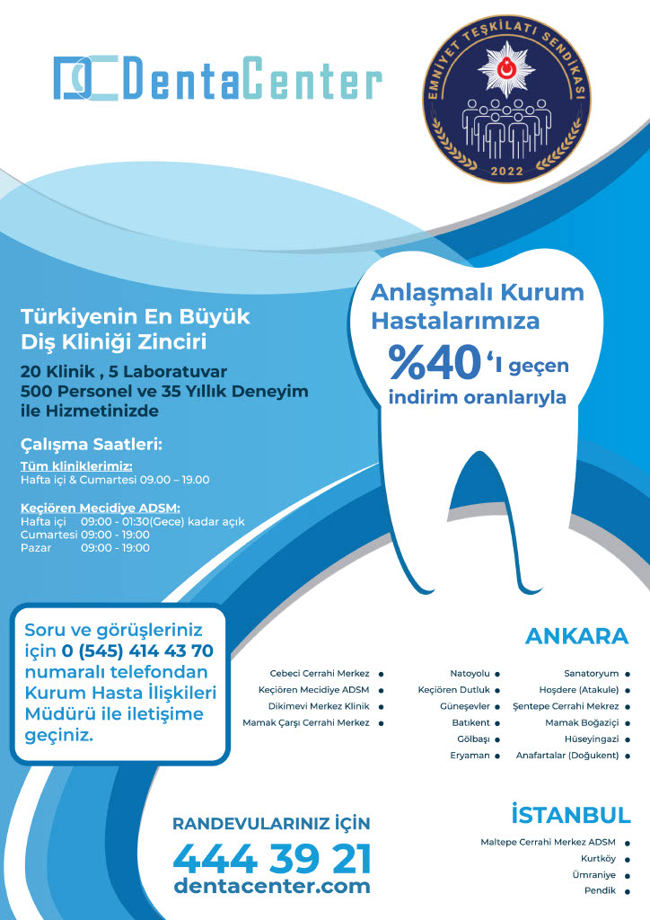 Emniyet Teşkilatı Sendikası ve DentaCenter arasında %40’ı geçen indirim oranlarında anlaşma sağlanmıştır.
