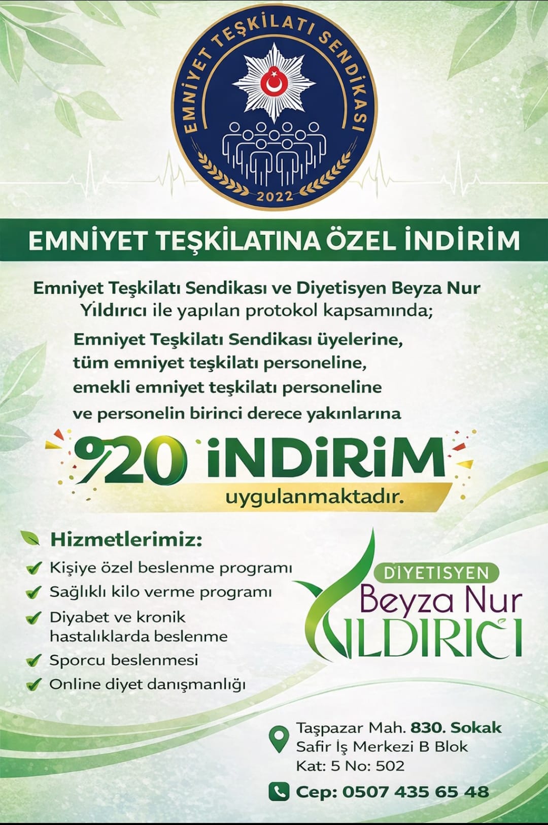 Emniyet Teşkilatı Sendikası Üyeleri, Tüm Emniyet Teşkilatı Personeli & Emekli Emniyet Mensupları ve Yakınlarına %20 İndirim
