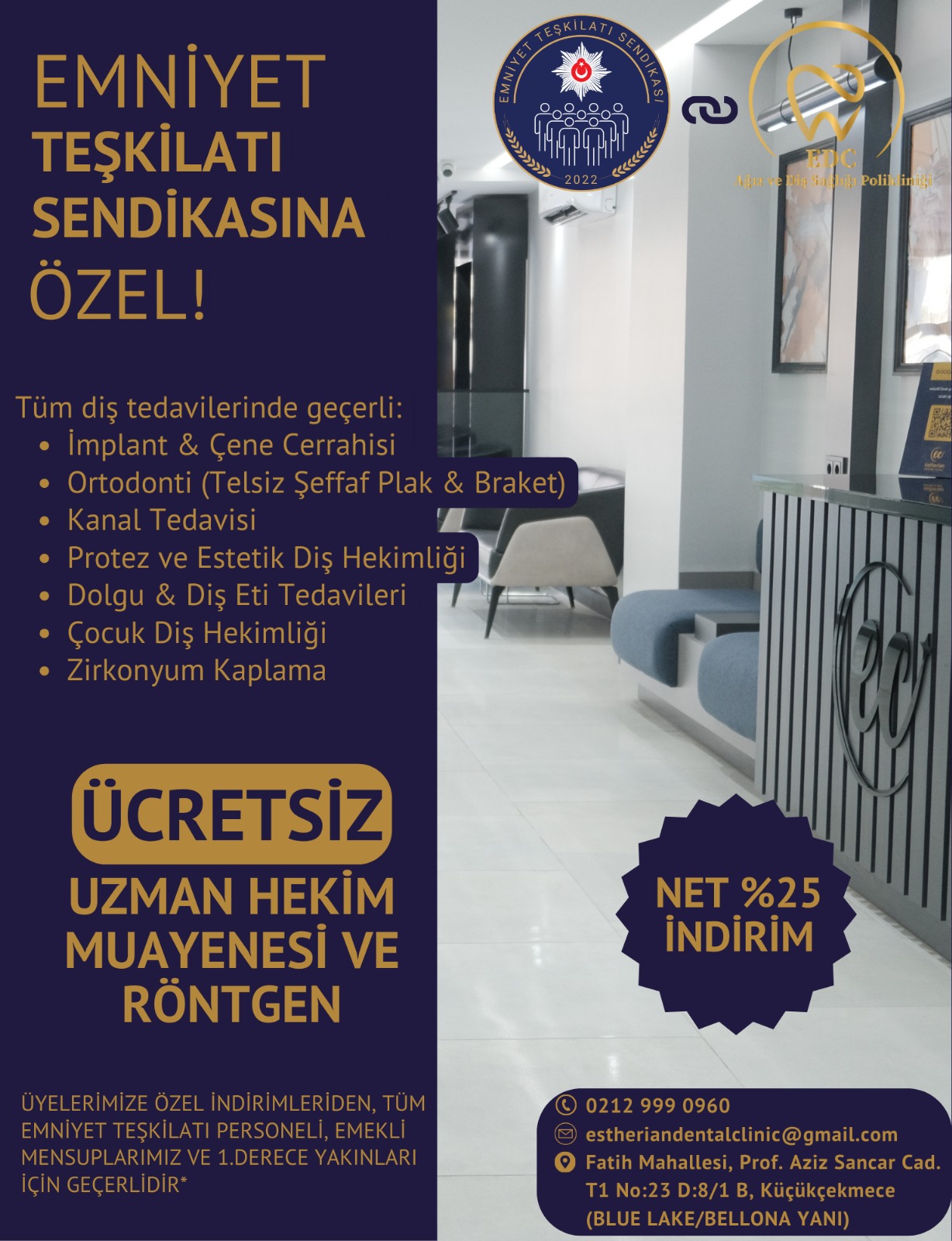 Emniyet Teşkilatı Sendikası ile Esteriadental arasında %25 indirim anlaşması imzalanmıştır.