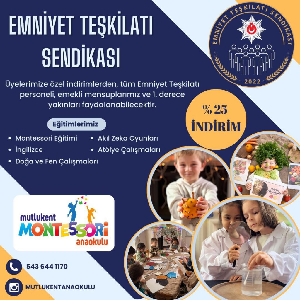 Emniyet Teşkilatı Sendikası ile Mutlukent Anaokulu arasında %25 indirim anlaşması imzalanmıştır.