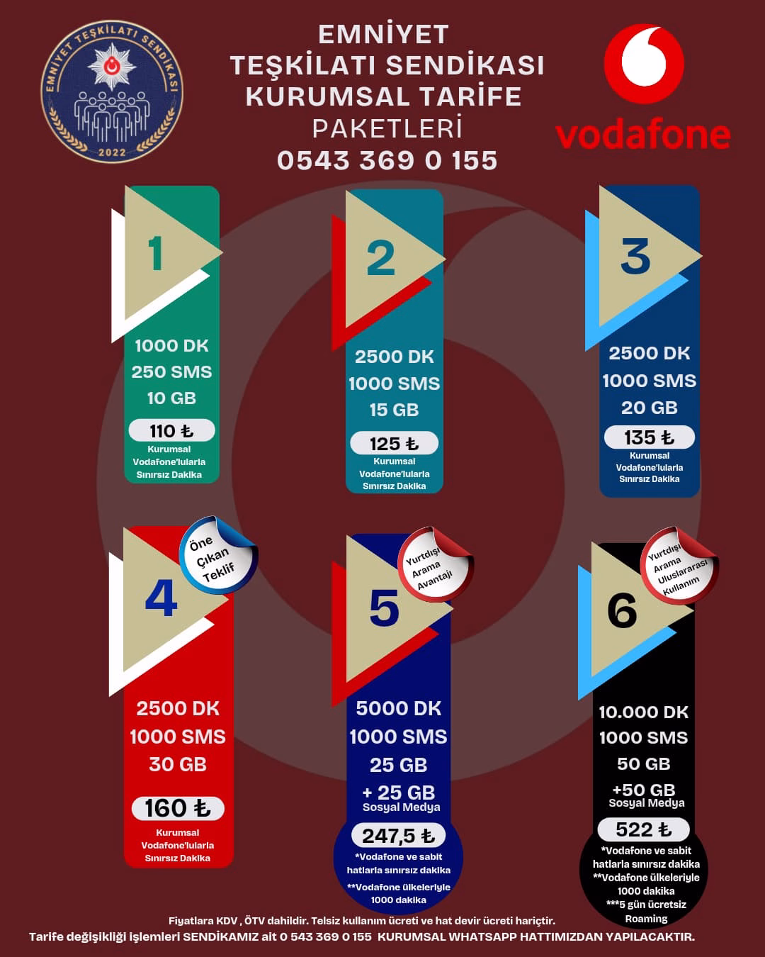 Vodafone iş birliği protokolümüz, Emniyet Teşkilatı mensuplarının tamamını, emeklilerini ve birinci derece yakınlarını (Nüfus kayıt örneğinde olan isimler) kapsamaktadır.