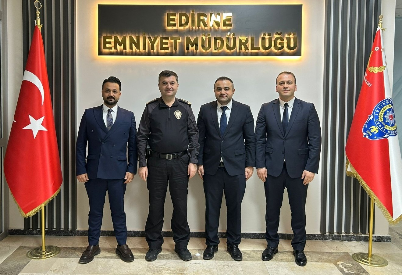 Emniyet Teşkilatı Sendikası Genel Başkan Yardımcısı Mevlüt DEMİR, Marmara Şube Başkanı Alperen ERGETİR ve Edirne İl Temsilcisi Samet CEYLAN’dan oluşan heyetimiz, Edirne İl Emniyet Müdürü Sayın Muhittin AYHAN’ı makamında ziyaret etmiştir.