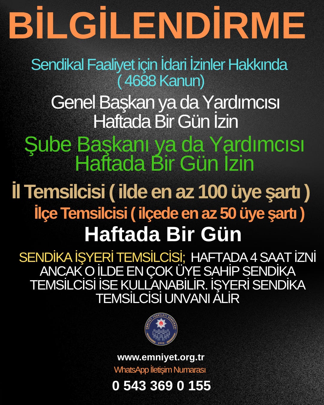 Sendika Temsilcisi İzinleri Hakkında Bilgi Notu