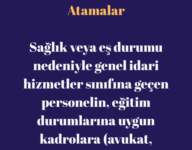 Sağlık veya eş durumu nedeniyle genel idari hizmetler sınıfına geçen personelin, eğitim durumlarına uygun kadrolara...