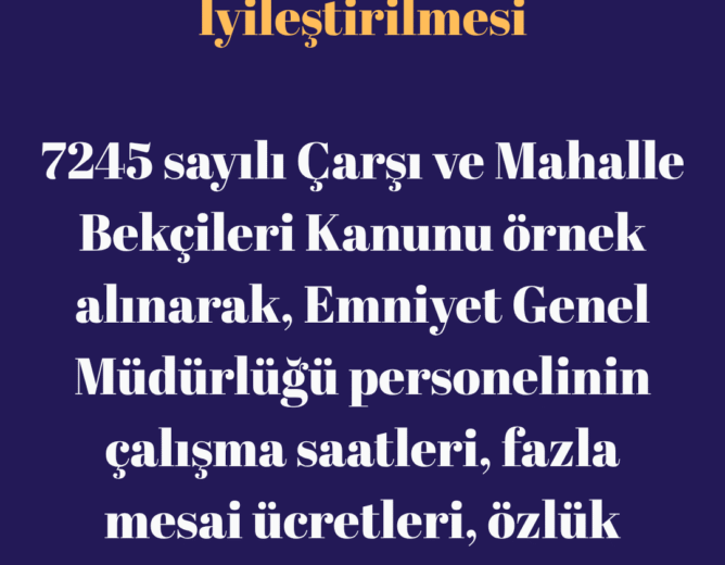 7245 sayılı Çarşı ve Mahalle Bekçileri Kanunu örnek alınarak, Emniyet Genel Müdürlüğü personelinin çalışma saatleri, fazla...