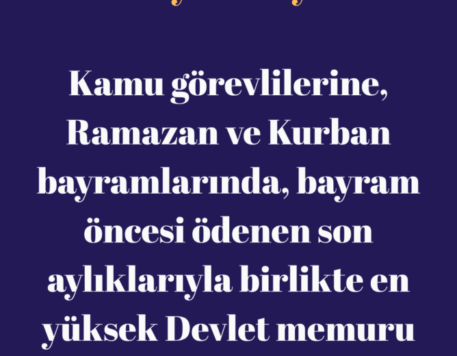 Kamu görevlilerine, Ramazan ve Kurban bayramlarında, bayram öncesi ödenen son aylıklarıyla birlikte en yüksek Devlet memuru...