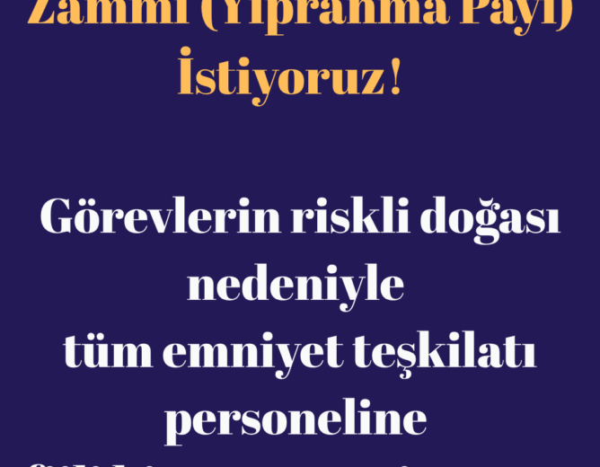 Görevlerin riskli doğası nedeniyle tüm emniyet personeline fiili hizmet süresi zammı (yıpranma payı) verilmelidir.