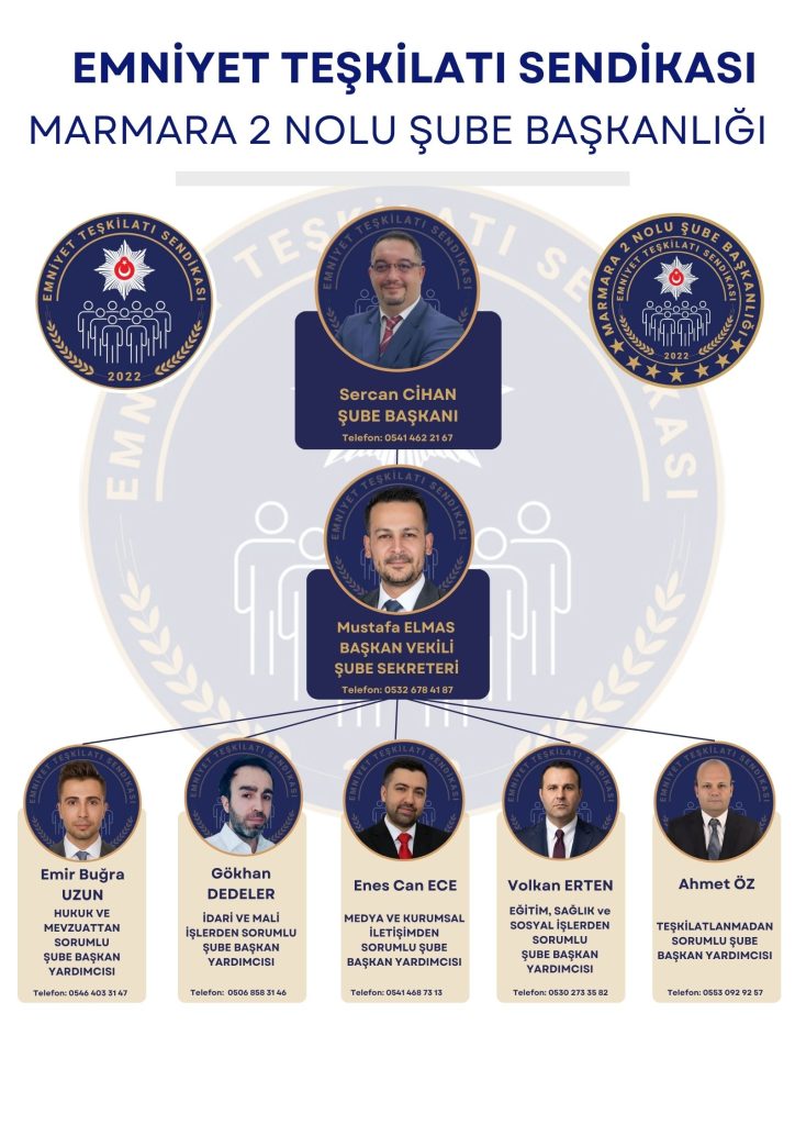 Marmara 2 Nolu Şube yönetiminde yer alan kıymetli dava arkadaşlarımıza bu onurlu görevde başarılar diliyor; yeni şubemizin tüm camiamıza ve sendikamıza hayırlı olmasını temenni ediyoruz.