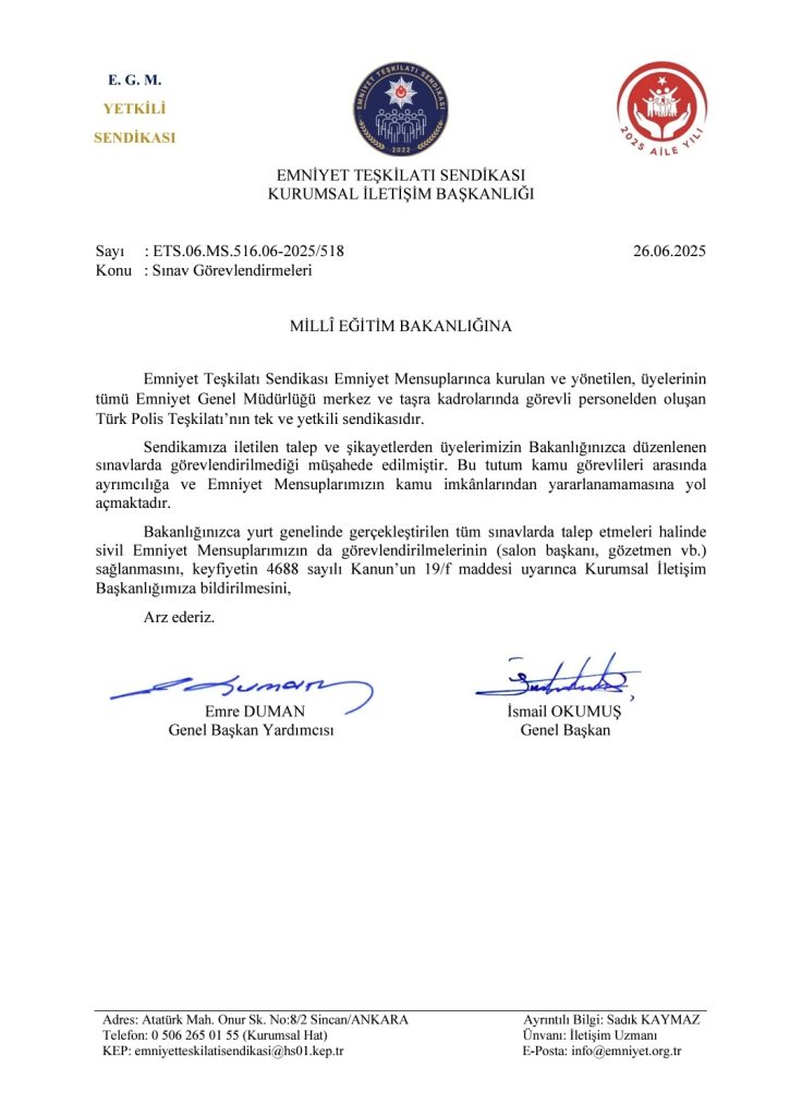 Talebimiz – EGM Personelin MEB Sınavlarında Görevlendirilmesi