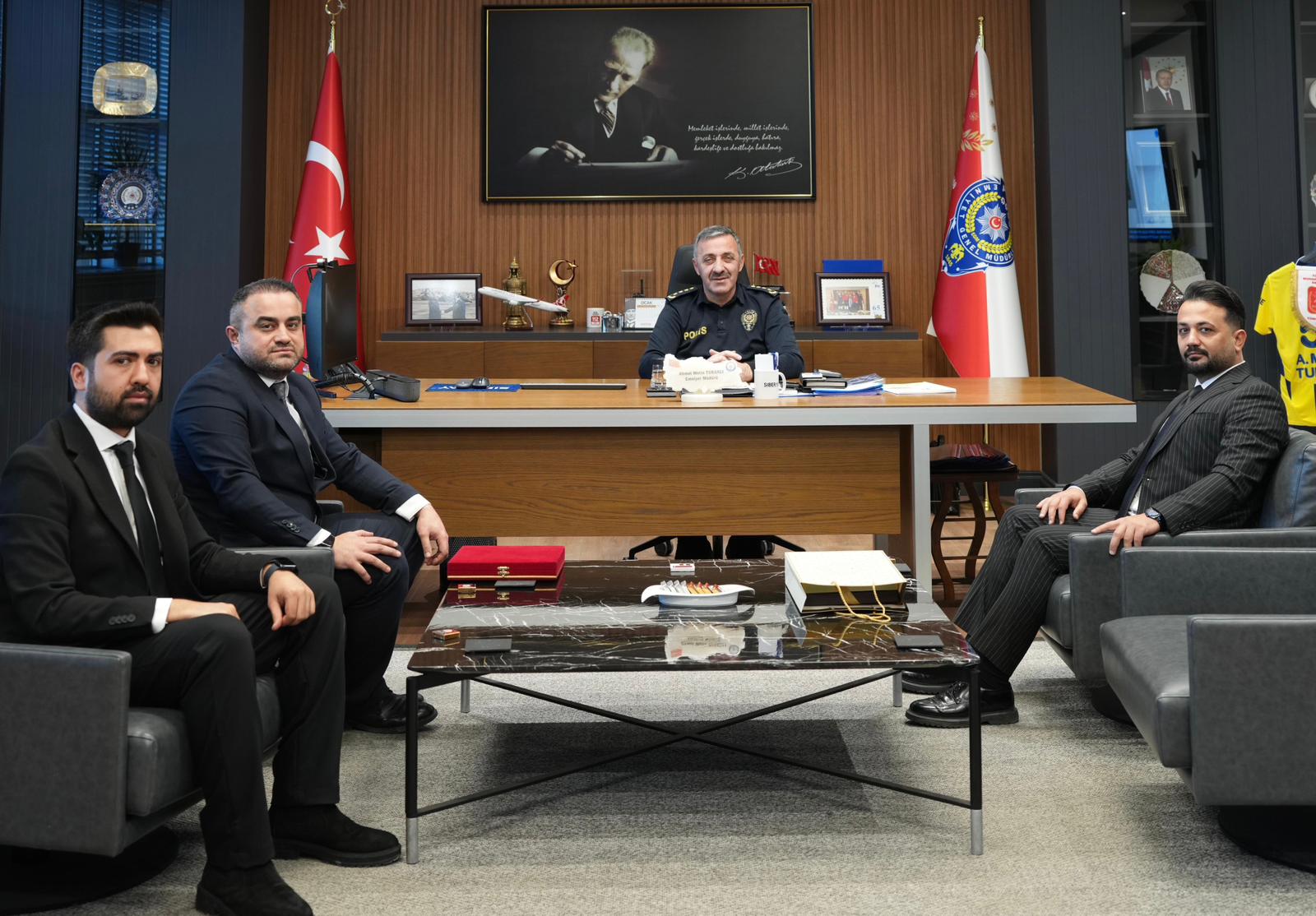 Emniyet Teşkilatı Sendikası Teşkilatlanmadan Sorumlu Genel Başkan Yardımcımız Sayın Mevlüt Demir, Marmara Şube Başkanımız Sayın Alperen Ergetir ve Tekirdağ İl Temsilcimiz Sayın Enes Can Ece ile birlikte gerçekleştirdiğimiz ziyaret kapsamında; devlet terbiyesini, kurumsal nezaketi ve samimiyeti bir arada hissettiren kabulleriyle bizleri onurlandıran Tekirdağ İl Emniyet Müdürümüz Sayın Ahmet Metin Turanlı’ya en içten teşekkürlerimizi sunarız.